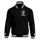 Designed with timeless varsity jacket elements including striped ribbed cuffs, collar, and waistband, along with a snap-front closure for a clean, athletic silhouette.