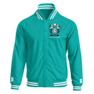 Designed with timeless varsity jacket elements including striped ribbed cuffs, collar, and waistband, along with a snap-front closure for a clean, athletic silhouette.