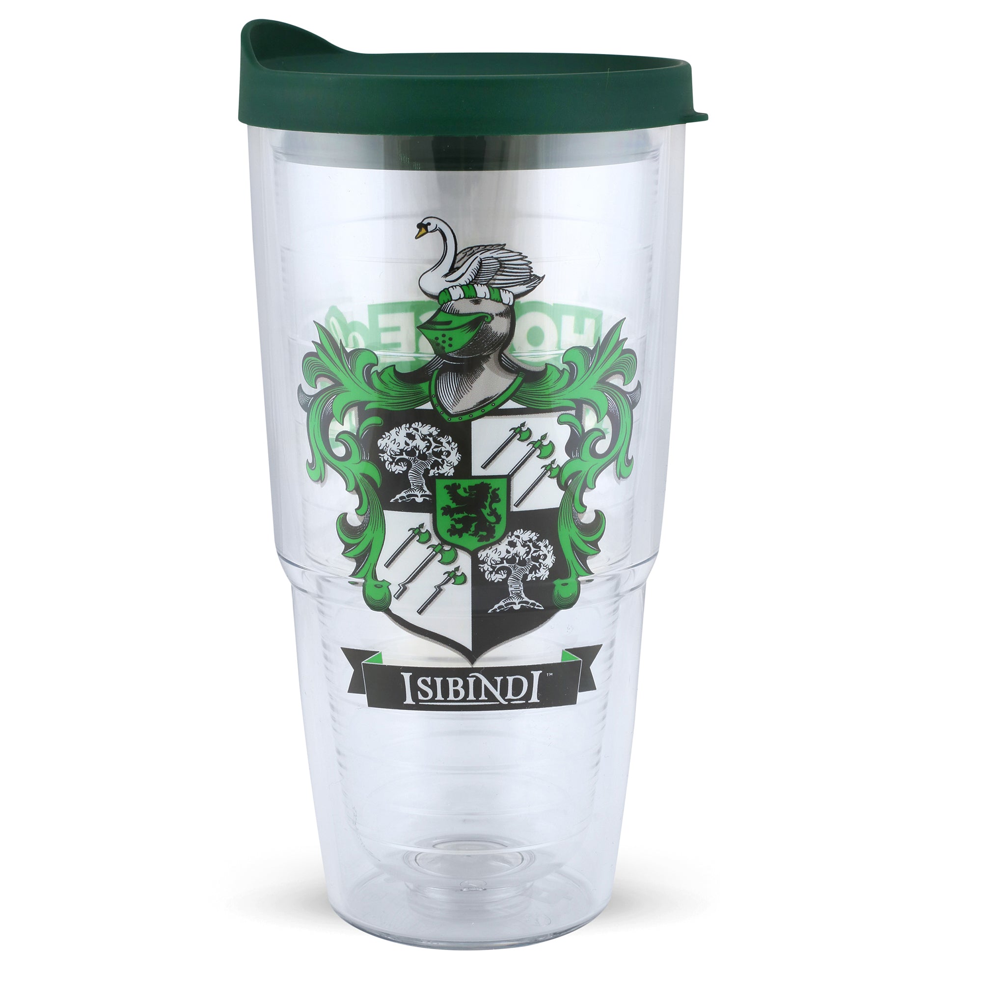 24 oz tumbler comes with a lid. Available in all four house colors. Each sold separately.